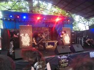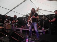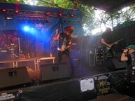 Die Spanier Graveyard hatte ich vor einigen Jahren schonmal beim Protzen gesehen, wo sie mir im Nachhinein mehr gegeben haben. Irgendwie klang die Band damals etwas böser und dunkler. Beim Auftritt am frühen Abend des Freitags hatte ich doch das Gefühl von etwas angezogener Handbremse. Zudem klang das Drumming in meinen Ohren etwas dünn, was den Gesamtsound schmälerte. Der meist im Midtempo gehaltene, knarzige Death Metal konnte die ersten Songs zwar noch etwas mitreißen, verlor aber dann irgendwie an Fahrt, was auch an der fehlenden Abwechslung zwischen den einzelnen Songs lag. Okayer Auftritt, schüttelte und rüttelte aber mitnichten an den dort umstehenden Bäumen.