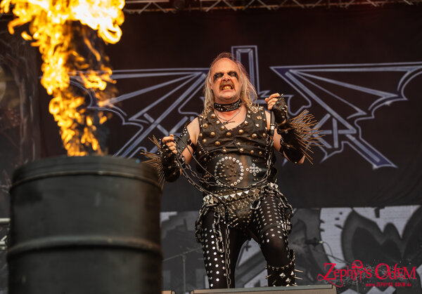 Posing, Nietenvollmontur und Schminke sitzen. Der Tag geht in den Abend über und das Infield ist gut gefüllt. Das kann nur bedeuten, dass Hellbutcher zur Black-Thrash-Vollbedienung laden. Und so ist es auch. Bei bester Laune und flink wie eine Katze bewegt sich Per Gustavsson über die Bühne, stets das Publikum im Blick und animierend gestikulierend. Das macht schon mal einen sehr guten Eindruck und auch die Band ist bestens mit ihrer Liveperformance vertraut, so dass Eigenkompositionen wie Violent Destruction und Possessed by the Devil's Flames gut reinbrettern bevor auch Covervesionen wie Black Metal extra schmissig in die Menge gefeuert wurden. [Phillip]