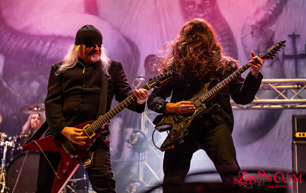Schon der Einstieg mit Circle of the Tyrants war pures Größenkino. Wer den größten Hit gleich zu Beginn verschießt, zeigt vor allem eines: immens dicke Eier. Und genau so ging es weiter. The Usurper, Return to the Eve, Into the Crypts of Rays, Necromantical Screams – ein Kracher jagte den nächsten, während Tom und seine Mannen die Bühne in eine schwarze Kathedrale verwandelten.