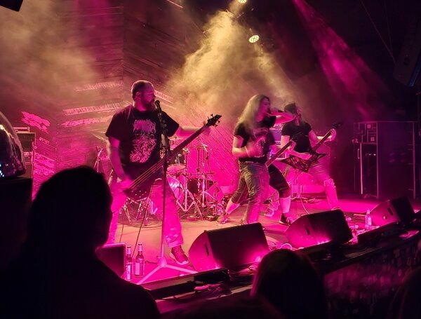 Optisch phänomenal aufgestellt, bei guter Stimme und am Instrument jeweils präzise rödelten sie technisch anspruchsvollen Death Metal in das Publikum, was nach den vorangegangenen OPS auch mal eine ausgedehntere Pause machte. In den letzten drei Songs hatte sich der Sound dann allmählich gefangen und KHNVM konnten das eigentliche Potenzial zumindest andeuten. Ich jedenfalls würde mich sehr darüber freuen, wenn ich diese Truppe möglichst schnell wieder sehen kann, bei satterem Sound und vielleicht zwei bis sechs Bier. (Wirst Du…Auf dem Z.O.F.F. 2026 - Olaf)