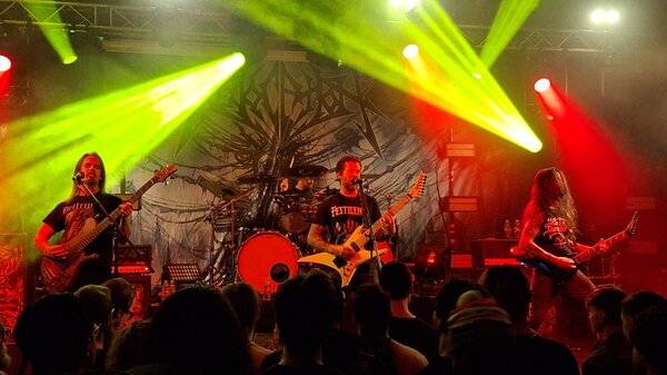 Nun war man gespannt auf die niederländischen DISTANT. Der grantige Mix aus dicker Hose Death/Core, Industrial und einer auch mal dissonanten Note konnte mich live leider nicht überzeugen. Lag vor allem aber wohl an dem bewegungsarmen Stageacting, den vollmundigen Ansagen, was allgemein auf mich doch eher ermüdend wirkte und mich doch eher gelangweilt dreinblicken ließ. Den Anwesenden war das herzlich egal und vereinzelt war auch gut Aktion im Pit.