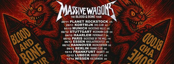 „Wir gehen 2026 wieder auf Tour durch Großbritannien – laut, hart und kompromisslos Massive Wagons! Keine Agenda, keine Spielchen, einfach purer Rock’n’Roll mitten ins Gesicht. Sichert euch Tickets – das wird pures Chaos!“