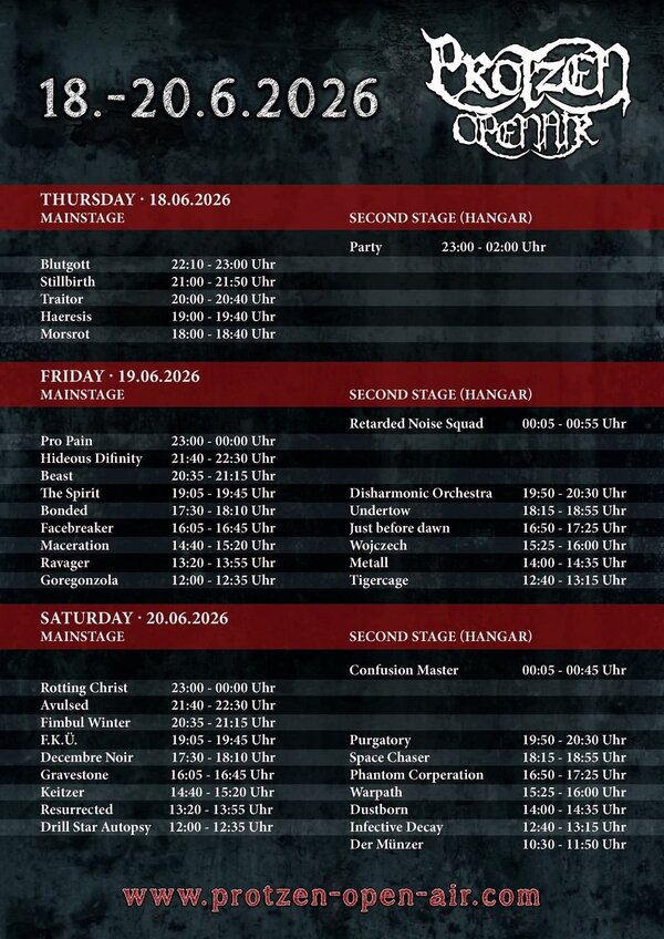 Hier sehen wir nun die offizielle Running Order des unverwechselbar charmanten Protzen Open Airs!