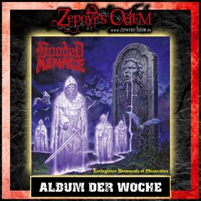 Kurz vorm Ende von „Lachrymose Monuments Of Obscuration“ wird es dann mit „Save A Prayer“ wieder etwas schleppender und doomiger, aber dennoch überzeugt auch dieser walzende Brecher mit einem ultraeingängigen Refrain und somit drängt sich auch Track Nr. 6 in die Reihe der nicht mehr weichen wollenden Ohrwürmer in meinen Kopf und sorgt dort für erheblichen Platzmangel. Doch es ist völlig egal wie eng es dort werden mag, ein weiterer Song muss sich unbedingt noch in die ergrauten Windungen meines Zerebrums quetschen. Mit dem fantastischen Rausschmeißer „Into Haunted Oblivion“ findet diese, in allen Belangen wunderbare Platte in einem wahren Requiem seinen Abschluss. HOODED MENACE bündeln nochmal all ihre Stärken, verweben alle bisherigen Elemente zu einem wahnsinnig abwechslungsreichem Monstersong und liefern ein Grande Finale wie aus dem Lehrbuch!