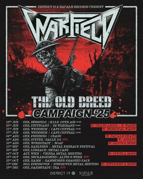 Nachdem die im Frühjahr geplante Tour der Ukrainer 1914 gecancelt werden musste, gibts es für den Juli, doch noch ein Date in Essen zu vermelden, natürlich viel zu wenig. Also pilgert zahlreich in den Pott. In einigen Tagen starten auch die Punk/Hardcore Dudes von Total Chaos sicher lautstark und räudig durch. Für die Zeit nach den Festivals haben die Booker einige heisse Eisen im Feuer. Also da wären: im Oktober die Black Metaller von Akhlys und die bockstarken Blood Command aus Norwegen im Dezember, die eine eigenwillige Mixtur aus Punk, Hardcore und Pop euch um die Ohren hauen, sehr zu empfehlen. Unbedingt vormerken müsst ihr Euch natürlich auch die Dates von den Death Doomern Jade | Totengott. Aber checkt auch die Termine der kultigen Thrasher Warfield. Die mit ihrem aktuellen Album ordentlich den Schädel fräsen.