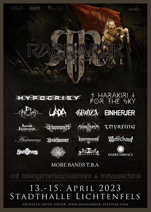 Am dritten Aprilwochenende, genauer gesagt vom 13.04.2023 bis zum 15.04.2023 öffnen sich die Pforten vom fränkischen Walhalla erneut. Das RAGNARÖK Festival in Lichtenfels geht in die 18. Runde und lädt alle Einherjer und Schildmaiden an die goldene Tafel um die bevorstehende Götterdämmerung gebührend zu feiern.